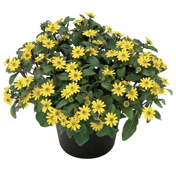 Темная листва, увенчанная блестящими желтыми цветами. Компактное растение с крепкими ветвями, которое отлично растет на открытом воздухе. Подходит для выращивания в горшках и упаковке.